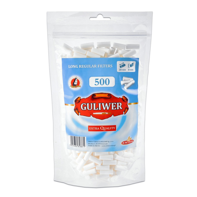Фільтри GULIWER REGULAR LONG – найвищої якості фільтри для скручування сигарет як вручну так і машинками для самокруток.Фільтри виготовлені з найвищої якості сировини. Дякуючи новітнім технологіям у фільтрах GULIWER зменшено вміст дьогтю і нікотину. Гарантія найвищої та незмінної якості.