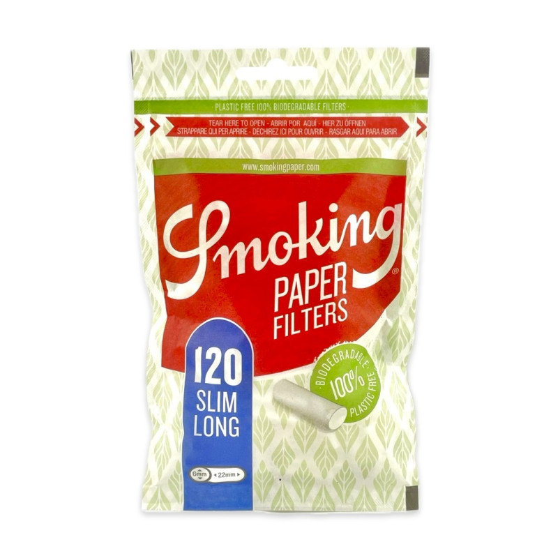 Ви віддаєте перевагу надтонким і наддовгим паперовим фільтрам? Не шукайте далі, це ваш продукт! Набір Slim Long Paper Filters містить 120 ультратонких фільтрів 22 мм завдовжки та 6 мм завширшки. Ідеальний варіант, щоб насолодитися сигаретами у своєму власному стилі. Крім того, поважаючи навколишнє середовище. Вони на 100% біологічно розкладаються та не містять пластику, оскільки виготовлені виключно з целюлози, яка розкладається природним шляхом.