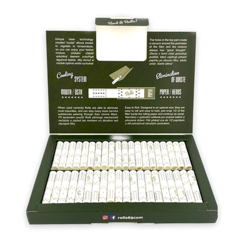 Rolls Smart Filters VIP XL Pack Regular - це колекція сучасного покоління фільтрів 6 мм. Розумні фільтри нейтралізують набагато більше шкідливих речовин, що утворюються при курінні джойнту, ніж традиційні фільтри. Вони мають інноваційну систему охолодження диму, т. зв "охолоджувач". Крім того, невеликі отвори у верхній частині Rolls Smart Filter створюють вакуум, завдяки якому тканина точно прилягає до фільтра, а їх розмір був розроблений, щоб зробити згортання з’єднання легким і приємним.