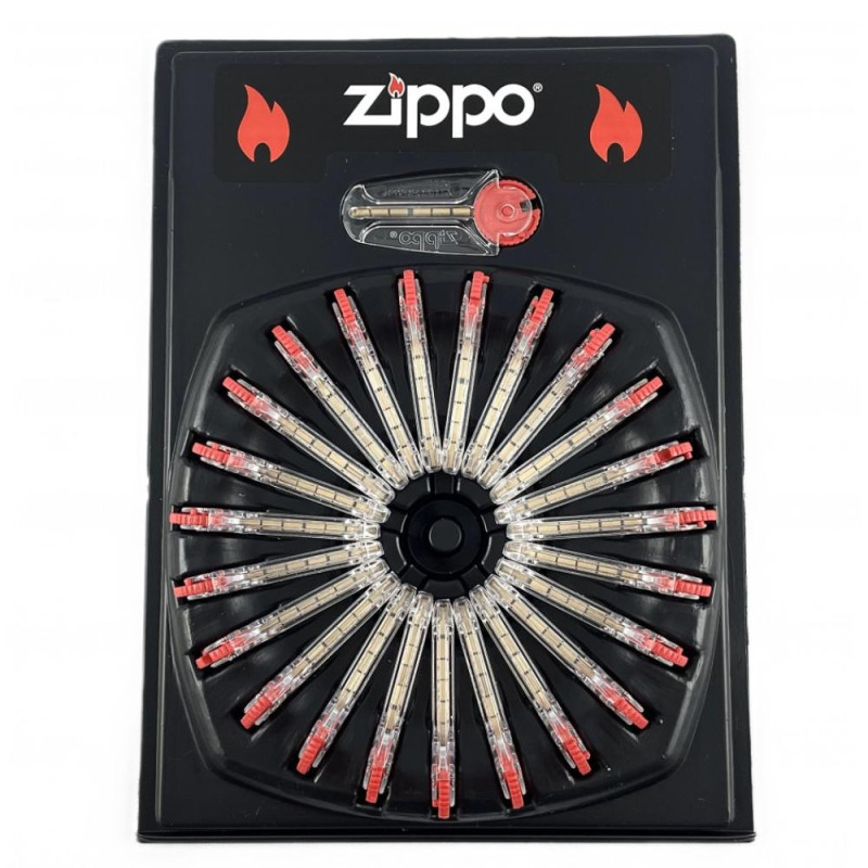 Czerwone kółko zapewnia wygodną i szybką wymianę kamienia w zapalniczce benzynowej.