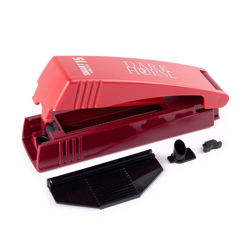 Розумна машинка DARK HORSE SMART призначена для набивання стандартних сигаретних гільз розміру king size (довжина фільтра 15 мм). Виріб має ергономічний, обтікаючий вид. Зазубрини на корпусі дозволяють надійно утримувати машинку під час трамбування тютюном сигаретних гільз. Оптимальна ціна і хороша якість.