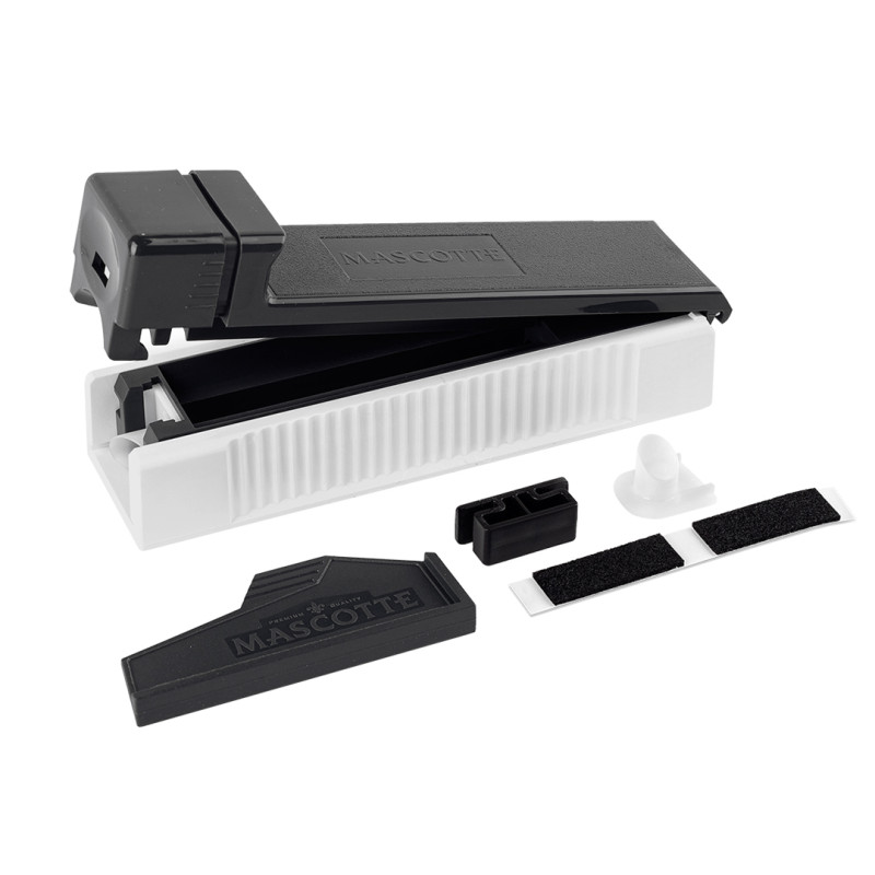 Maszyna MASCOTTE CLASSIC ALL IN ONE idealnie nadaje się do napełniania zwykłych bibułek papierosowych z filtrem 15 mm. Dzięki specjalnej wkładce, którą można przymocować do maszyny, można również napełniać bibułki z filtrem o długości 25 mm (rozmiar x-long). Wysoka jakość w korzystnej cenie. Prosta w użyciu. Zestaw zawiera: