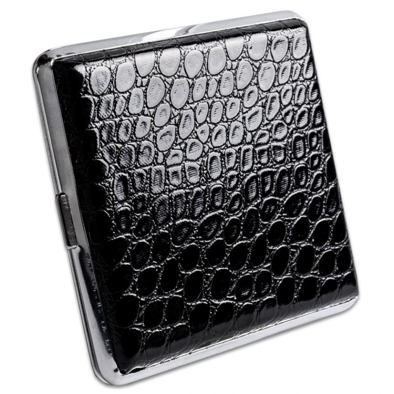 Портсигар BLACK- незамінний атрибут для курця, який скручує цигарки самостійно. Зручна та стильна коробка для зберігання самокруток та сигарет. Всередині портсигару розташована гумка, яка перетягує сигарети та не дозволяє їм ковзати. Поверхня коробки покрита якісним шкірзамінником, стилізованим під крокодилячу шкіру.